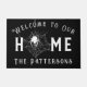Welcome guests this spooky season with our Personalized Spooky Spiderweb Halloween Doormat, perfect for those who love a dark aesthetic. This durable outdoor doormat is ideal for porches or entryways, adding a touch of gothic home decor to your space. The design features the phrase "Welcome to Our Home," with the "O" in *"Home"* cleverly transformed into a hanging spider spinning her web. The bold white text and illustrations stand out against the black background, creating a striking and scary vibe. Personalize it with your family's last name at the bottom, written in an elegant vintage font that enhances the gothic appeal.