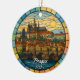 A Personalized Travel Souvenir Ornament designed to celebrate your unforgettable trip to Prague in Czech Republic. Whether you went for work, enjoyed a romantic getaway, or took part in a school exchange program, this ornament commemorates a special moment you’ll always cherish and want to remember for years to come. This ornament features a stained-glass-style design creating a truly eye-catching piece.