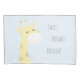 Personalized Single Pillowcase for kids, with a giraffe smiling. Custom name and saying. Your kid will love it :) Pastel blue, grey and white colours. Please note, the colours displayed are slightly brighter than in reality due to photo exposure, you can see right colours in Boundaries when customizing the pillowcase.