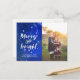 Modern Personalized Merry and bright starry night sky Christmas photo card postcard featuring beautiful a galaxy of stars and lovely handwritten typography. Personalize with your very own message.