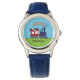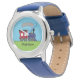 This design features a steam train and comes with a variety of band colours. You can also personalize the watch with a child's name. Please message me with any questions.
