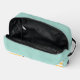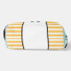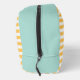 Elevate your travel essentials with this chic and customizable toiletry bag. Featuring vibrant yellow and white stripes with eye-catching aqua trim and a sleek black zipper, this durable polyester bag is both stylish and functional. The interior, lined in black, includes two pockets for convenient organization. Personalize the front and back with any letter of your choice, making it a unique and thoughtful gift for any occasion.