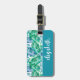 A turquoise, green and white tropical palm tree frond design, this luggage tag is personalized with your first name in a chic handwritten script on the front and your details on the back. The perfect personal gift or accessory for any occasion! MATCHING suitcase and more in our travel collection.