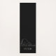 This stylish and modern black and white yoga and meditation mat features a pen drawn elephant kneeling in a natural yoga pose down on its front legs, and on his trunk, a little mouse in a handstand. An original design available exclusively at ©EleSil online store.