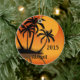 Personalized Sunset and Palm Trees Tropical Beach Ceramic Ornament
