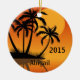 Personalized Sunset Tropical Beach and Palm Trees Christmas Ornament.
