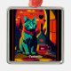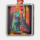 Personalized Sunset Cat Books And Wine Metal Ornament