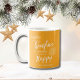 This Personalized You Are My Sunshine You Make Me Happy coffee mug in yellow orange with whimsical script font and yellow Sun will brighten up any cup of coffee or tea! The bright yellow orange colour will add a pop of sunshine to anyone's day, and the modern typography, cheerful sun, lyrics, and the reminder that someone loves you will put a smile on your face every time you see it. This item coordinates with the Sunshine You Make Me Happy Yellow Orange Collection.