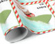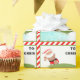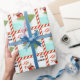 Surfer holiday gift wrap featuring Santa Claus surfing. To personalize edit text to add name.