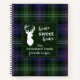 Cute home sweet home Christmas family favourite recipe notebook you can easily customize by clicking the "Personalize" button, Featuring deer silhouette and clan Sutherland tartan in purple, green check.