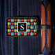 Make your own personalized luggage tags for anyone who loves the country of Sweden. Featuring a unique chequered pattern with the Swedish national flag and red hearts on black squares. With a custom text box where you can type in your own initial or any other letter (or number) you might want. Just click to personalize the template and replace the placeholder text with your own. These are great for patriotic Swedes who like to travel, and for people planning a trip to Sweden!
