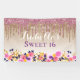 Personalized Sweet 16 Floral Dripping Glitter Banner