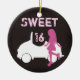 Personalized Sweet 16 Girl and Car ~ Pink, Brown Ceramic Ornament