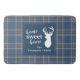 Cute home sweet home Christmas bath mat you can easily customize by clicking the "Personalize" button, Featuring deer silhouette and clan Kerr tartan in grey blue chequered pattern.
