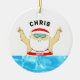 Swimming-themed Christmas ornament holiday gift featuring Santa swimming. To personalize for your favorite swimmer, edit text to add name and year.
