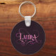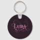 Personalized Swirly Script Laura Pink on Purple Keychain