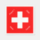 Simple Swiss flag motif for August 1 Swiss National Day parties, fondue dinners, etc.  Classic white cross against a red field.  Add your own custom text in the four areas around the flag.