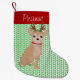 Personalized Tan Chihuahua and Green Polka Dots Small Christmas Stocking