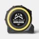 Personalized tape measure roll for builder. Cool design with crossed hammers and star logo. Fun Birthday gift idea for men and boys.