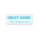 This stamp design features the message "GREAT WORK!", and a personalized teacher name. It could be used by a teacher while grading assignments to acknowledge a student that has done a particularly good job.