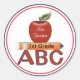This personalized teacher sticker has a place for her name and the grade she teaches. There are circles on the outer edge with an apple, pencil and ABC.