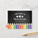 Personalized Teacher "Welcome Back to First Grade" Postcard Template – Rainbow Pencils Design is a perfect way to welcome your students in style with this colourful and customizable postcard! Featuring a fun rainbow pencil illustration on a classic chalkboard background, this design is perfect for preschool, kindergarten, and elementary teachers. Personalize the front with your name and grade, and use the editable back to add a custom message or leave it blank to handwrite a personal note. A thoughtful way to start the school year with warmth and connection.