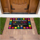 A fun and colourful "Welcome" mat to greet visitors with two lines of personalization. Would make a great gift!