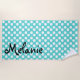 Personalized Teal and White Polka Dot Beach Towel