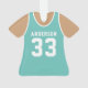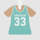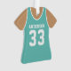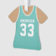 Celebrate your basketball star with this personalized teal basketball jersey ornament. Perfect for commemorating a special season, player, or team. Customize it with a name and number to create a unique keepsake.