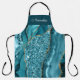 Personalized teal blue Agate print apron with name in script lettering. Chic blue sequence style and marble geode pattern.