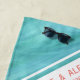 In shades of teal with coral and white, this beach towel is simple and modern and a lovely way to remember your special day.