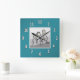 A simple wall clock where the time circles around you or your beloved ones! Add your personal photo and this clock will transfer into a valuable item for yourself or someone you'd like to surprise! The coloured square frame is teal, and digits are white with black shadow. There exists 5 colour variations of this design - teal, black, silver, blue and pink.
