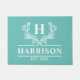 Welcome guests with elegance and warmth using this personalized teal doormat. The classic laurel wreath design, customizable monogram initial, and established year create a timeless and inviting look. Crafted with durable materials, this doormat is perfect for adding a touch of sophistication to your porch or entryway.