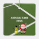 This unique tennis Christmas ornament holiday design features a green tennis court background with cutest tennis ball snowman and Santa Claus with a tennis racket. Personalize the back with a name and year!