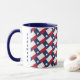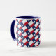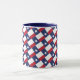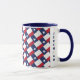 Personalized TEXAS FLAG Coffee Mug with CUSTOMIZABLE TEXT. Stylish personalized Texas flag mug with an unusual overlapping flag pattern, which creates a modern geometric design. The placeholder name appears in a bold navy blue typepface, and is turned 90 degrees. This text is customizable, so you can personalize with your name or other text. This would make a great gift for the patriotic coffee drinker, and its unusual pattern will set it apart from the usual Texas flag mugs on the market. Ideal for birthdays and Christmas, and suitable for private and business hospitality use. Matching gifts available.