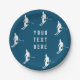 Personalized Text Skiers Skiing Ski Blue White Paper Plate
