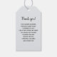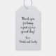 Personalized thank you gifts. Used a different ribbon to attach to gifts. Great quality! Very durable material and good size.