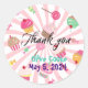 Personalized Sticker with Thank you. Add you own text ....birthday name and date currently on mock up. Sticker has party cupcakes, candies and desserts. Great for confectionery stores and bakeshops!