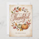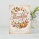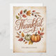 Featuring elegant hand-lettered typography that reads “Thankful” surrounded by pumpkins, acorns, and golden leaves, this card captures the cozy warmth of the season.