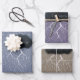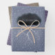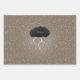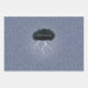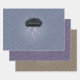 This wrapping paper set has a rainstorm with a dark thunder cloud spewing lightning on shades of dusky blue, purple, and light brown. The cloud on each sheet is approximately 6-7 inches wide and not suitable for smaller boxes. Personalize the thunder clouds with up to three names or a short message.
