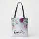Personalized Tote Bag Tropical Flower on Blue Ombr