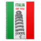 This personalized notebook features the Leaning Tower of Pisa over the Italian flag.