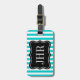 Personalized travel luggage tag | elegant style. Classy turquoise blue stripe design with white monogrammed name intitial letters. Elegant gift idea for men and women. Cute 3 letter monogram with striped pattern. Customizable background colour.