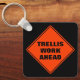 A classic orange diamond caution road sign warns of trellis work ahead in a thick black sans serif font. A pun play on words of a classic sign, road work ahead, garden humor, fence architecture, for pergola or plants. Personalize this item by adding a name on the back.