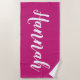Personalize this fun, trendy script calligraphy beach towel with your name! This is the dark fuchsia version. Great for your summer vacation, bachelorette parties, kids summer camp, or spring break!
