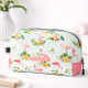 Turn your daily routine into a tropical escape with this vibrant and personalized flamingo dopp kit. Designed with a pastel aqua background and bursting with exotic florals, pink polka dots, and whimsical flamingos, this toiletry bag is a perfect blend of function and flair.