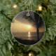 Celebrate a first holiday together or create a personal souvenir of your honeymoon with this tropical ocean view ornament. Customize or delete the text on this holiday ornament with a tropical beach sunset scene, framed by a palm tree.