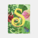 A brighly colored jungle theme, tropical leaves, fleece blanket. Personalize with your initial. A very nice blanket to give you a garden look, and will look very good in a orangery or conservatory.