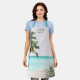Cook in tropical style with this personalized apron! Featuring watercolor palm trees, a blue beach scene, and coastal vibes—suitable for beach house decor.