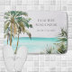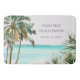 Step onto tropical vibes with this personalized bath mat! Featuring watercolor palm trees, a blue beach scene, and coastal summer charm for your beach house decor.